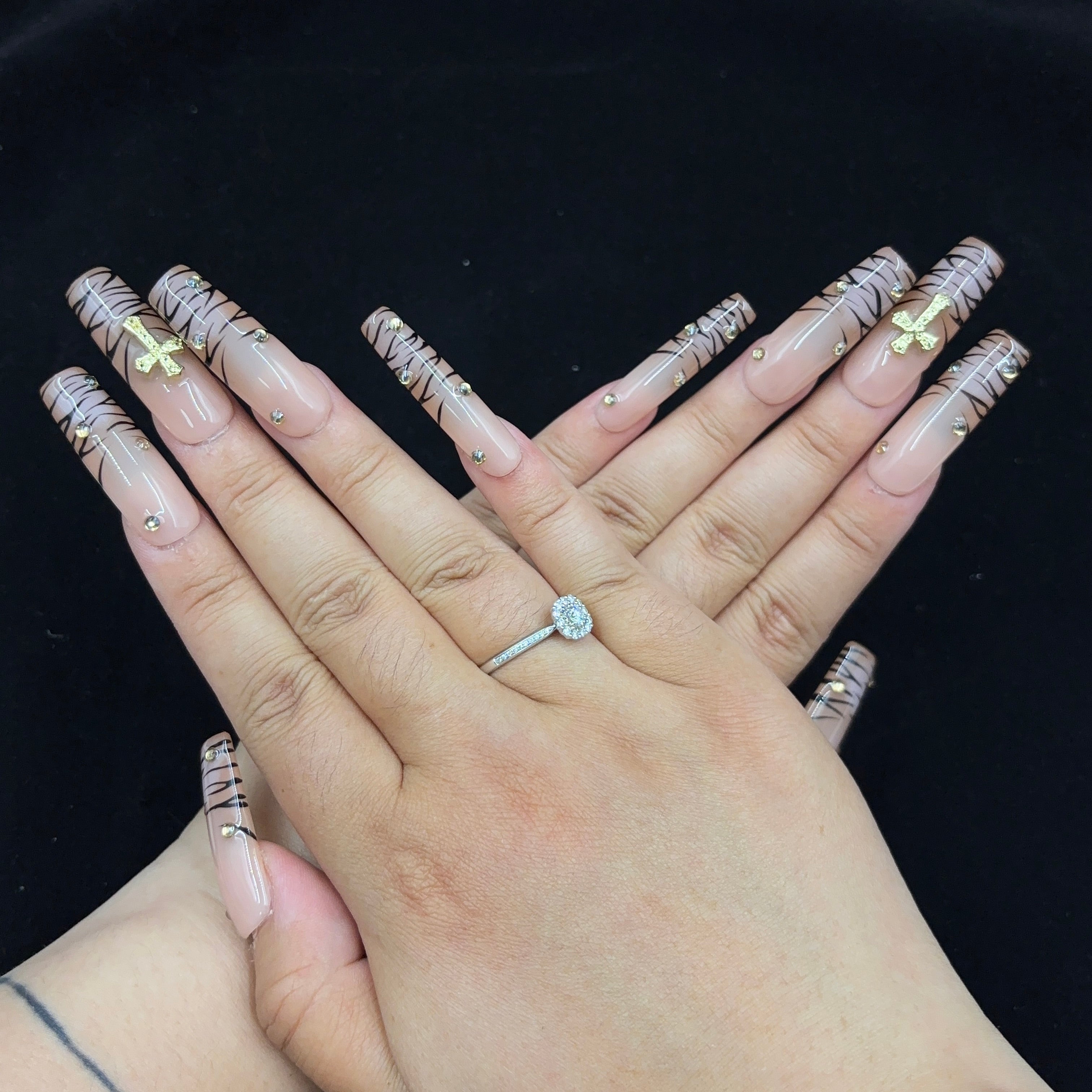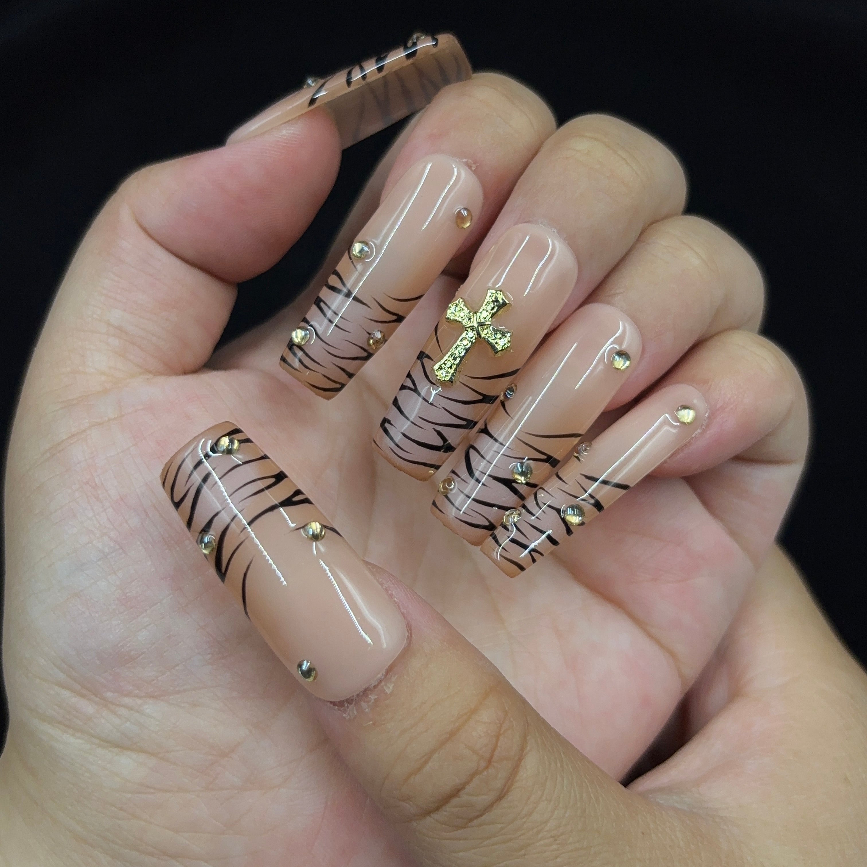Home Golden Cross Tiger - Stripe Handmade Nails D025