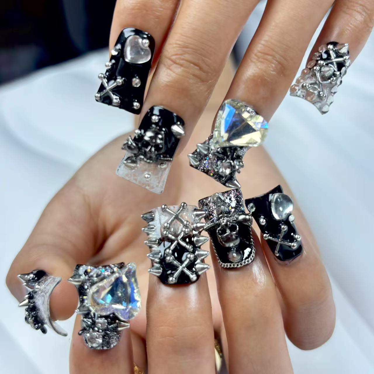 Unleash your edgy side with our Gothic Glamour Handmade Nails. These nails feature a striking combination of...