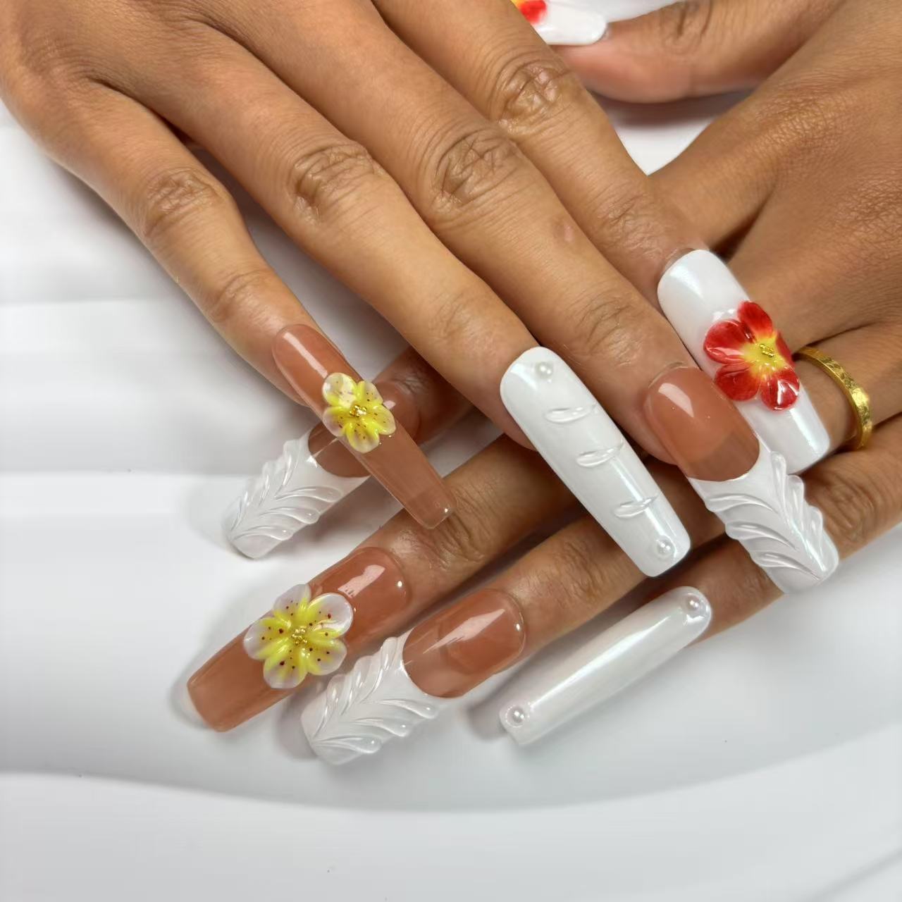 Exquisite Handmade Multicolored Nail Art with Floral and Gemstone Embellishments D051Exquisite Handmade Multicolored Nail Art with Floral and Gemstone Embellishments D051